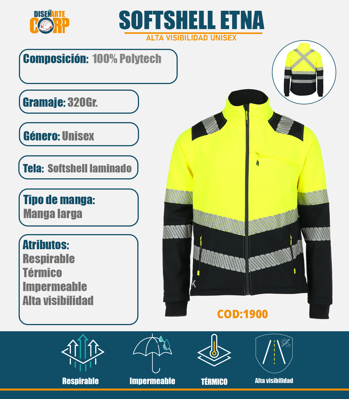 El softshell unisex Etna es ideal para entornos laborales, certificado bajo la norma ISO