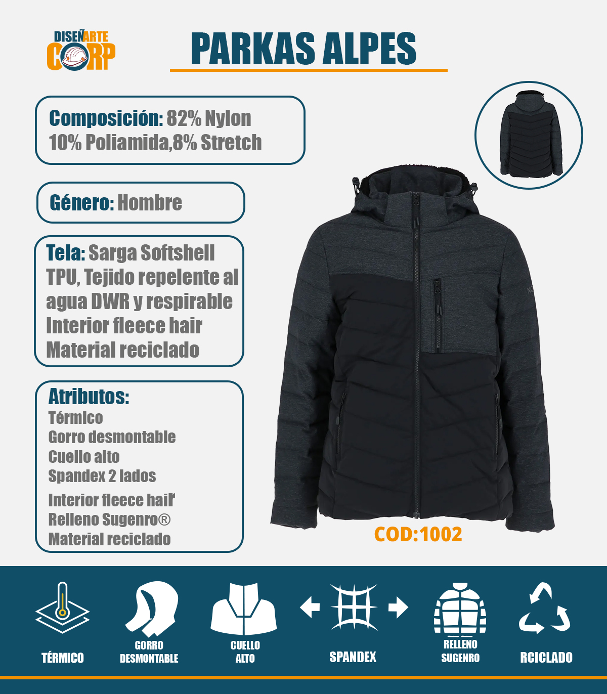 La parka híbrida Alpes está diseñada para quienes disfrutan de actividades al aire libre,